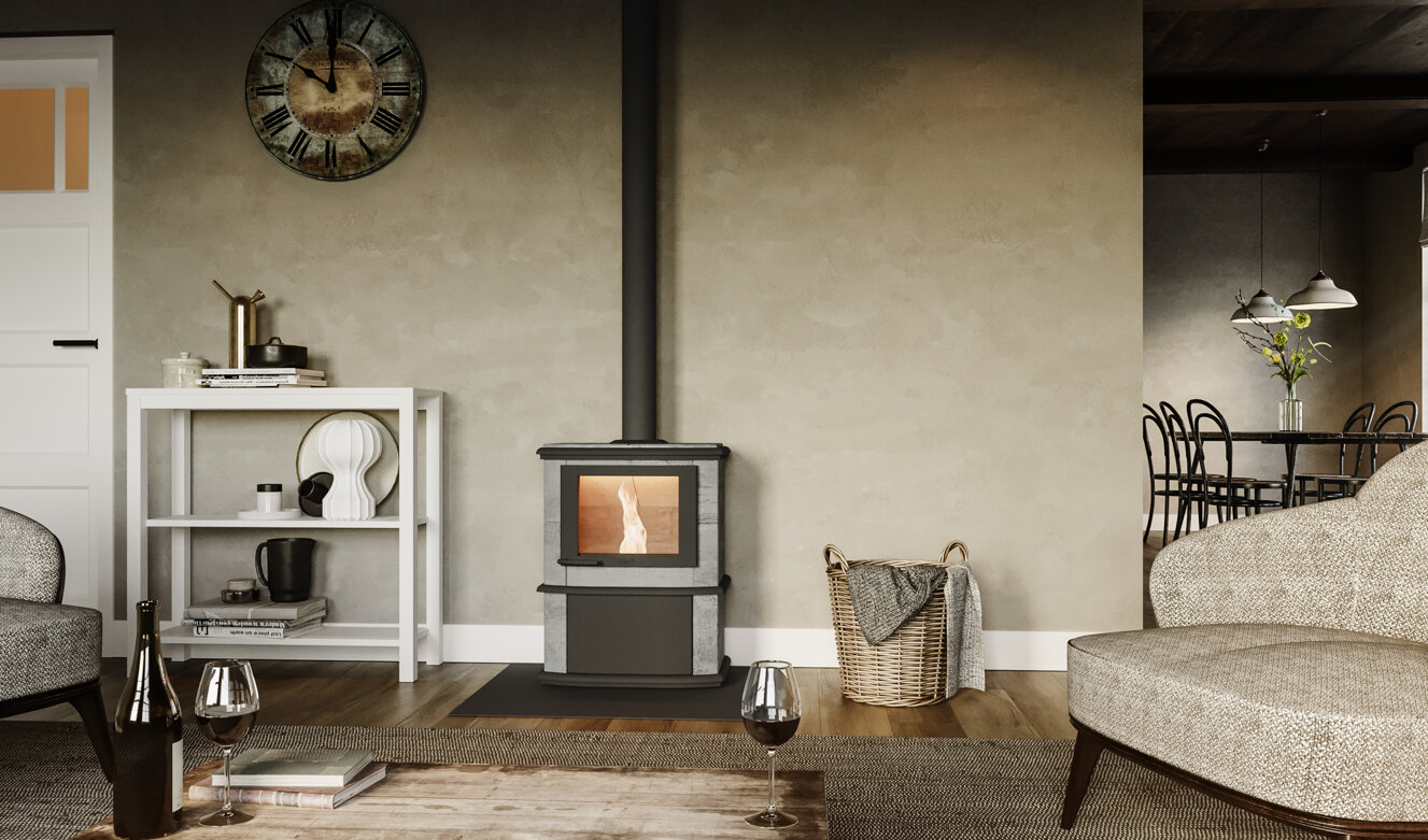 Stufe in pietra ollare finlandese che trasformano poche ore di fuoco una intera giornata di calore radiante. Efficienza pura, design nordico e benessere naturale in un sol corpo massiccio.
